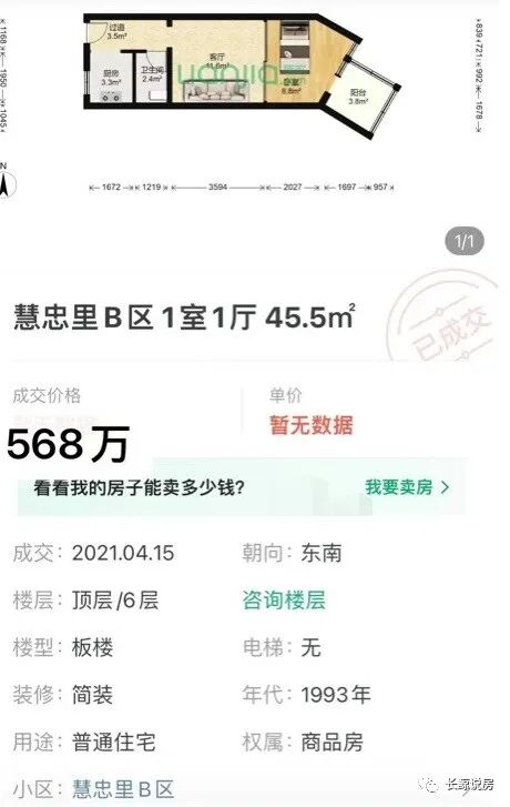 从这两条成交记录来看,慧忠里老破小的房价,直线暴降。这个下降幅度,非常惊人。短短两年五个月时间,房价暴跌183万。