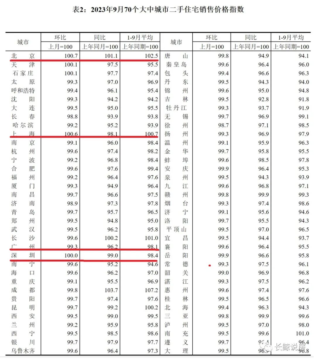今天,统计局发布了9月份70个大中城市二手住宅销售价格指数,从这数据来看: