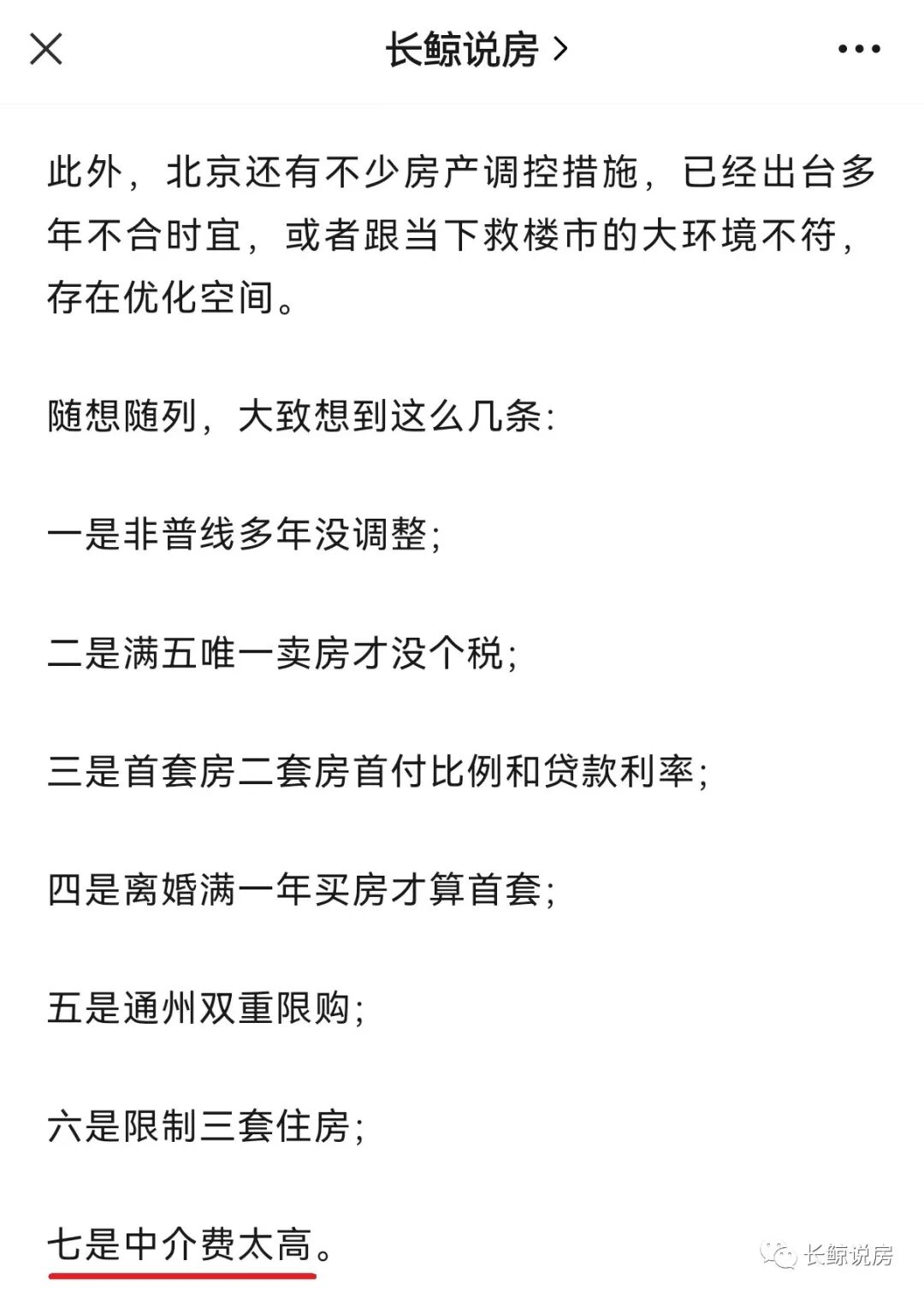 9月10日,在当时的公众号文章里,我也曾经列举了几项接下来可能放松的措施,其中提到的第7项,中介费太高了,目前已经调整了。