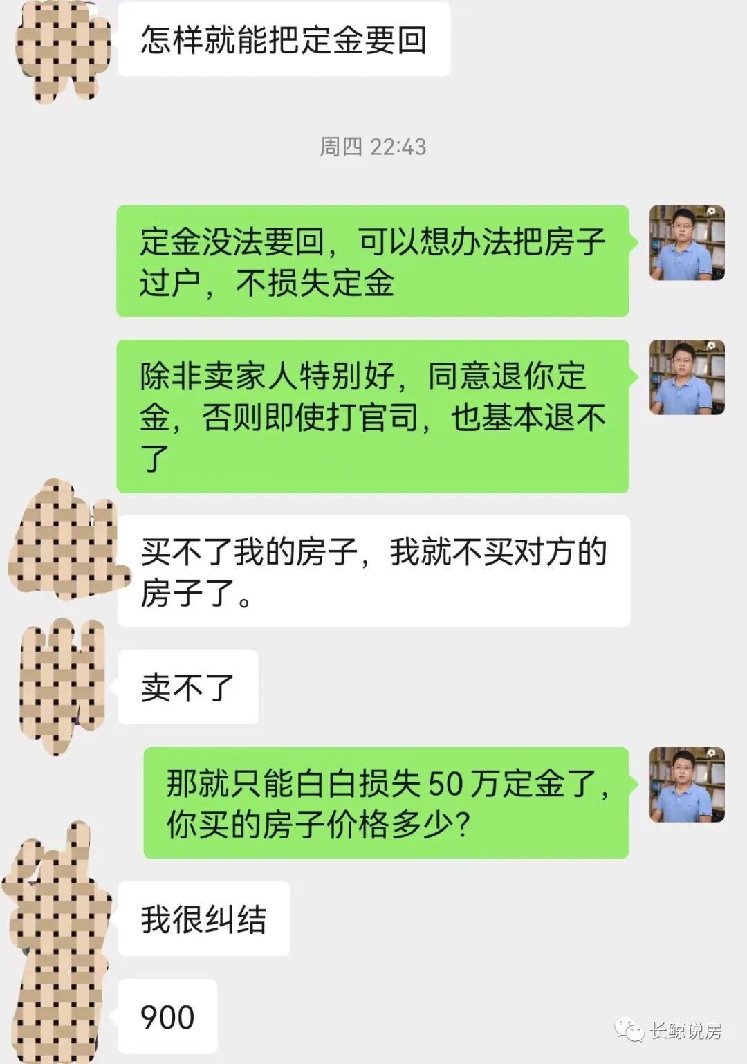有个粉丝,5月份换房,房子总价900万,支付了定金50万。结果后面换房不顺,辗转反侧,纠结万分,最后考虑解约。