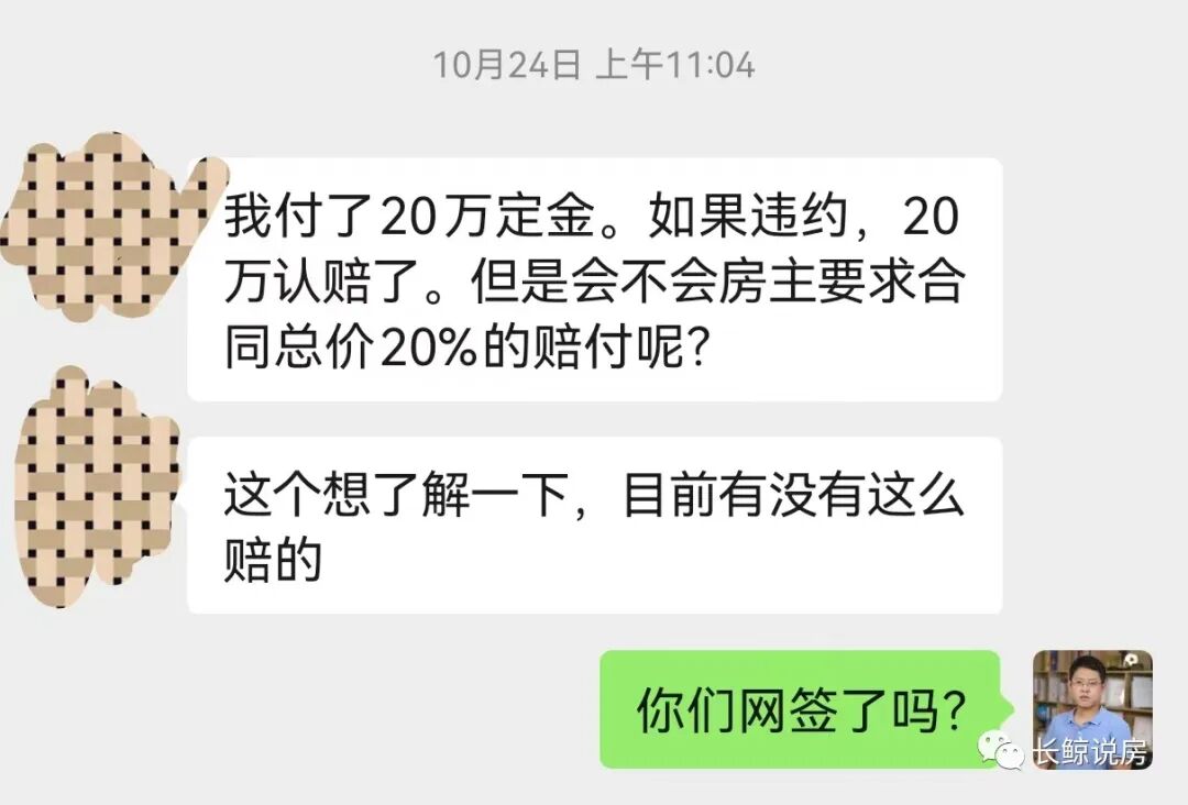上面这俩都是买房人直接询问,如果违约,会不会导致更多的赔偿,比如房款20%的赔偿。