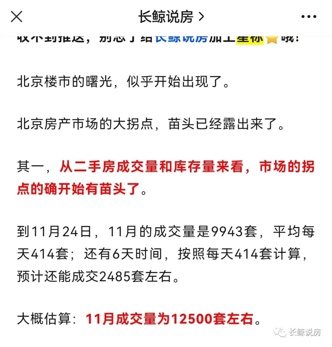 11月,北京二手房住宅网签12545套。前几天,对于11月份的成交量,我蒙了一个数字:1.25万套。