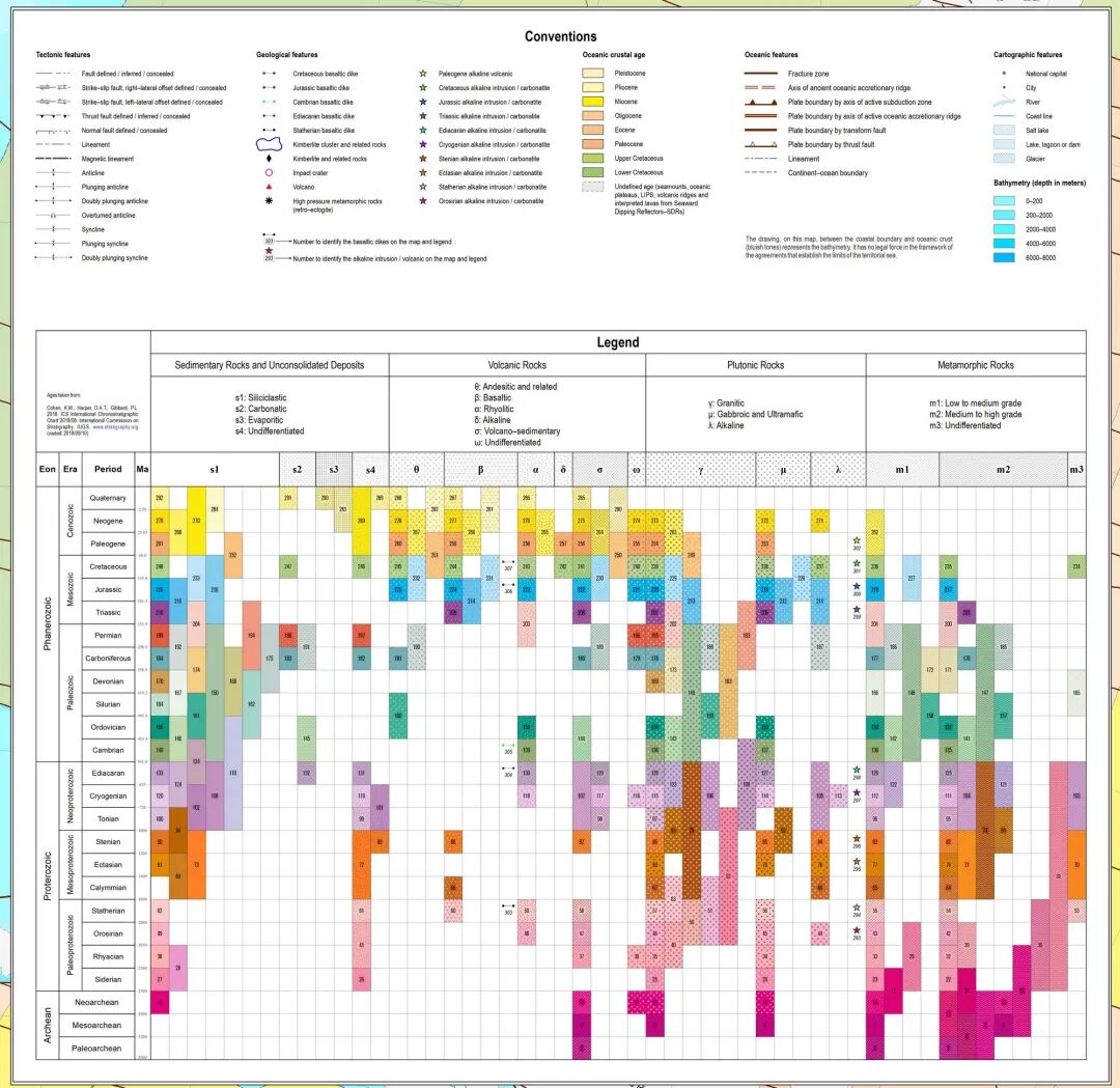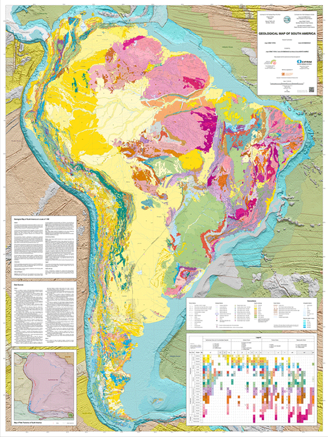 由 Geological Map of the World (CGMW)、Colombian Geological Survey、Geological Survey of Brazil 联合制作的1比5百万南美地质图开放了下载,不仅提供了高清图片,还提供了完整的 ArcMap 工程文件 mxd、GDB数据库、样式、字体、在线服务、ArcGIS Onlien等,可谓是一应俱全。