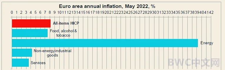 而据彭博社6月1日报道, 欧元区5月消费者物价指数(CPI)同比跃升8.1%,升至历史新高。超过接受彭博调查的经济学家预期中值7.8%。例如,在德国,物价上涨几乎影响了从超市商品到能源等所有东西。