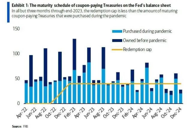 惠誉在7月29日发表的报告中强调部分新兴市场国家“举新还旧”的债务经济模式将受到信贷和融资成本上升的挑战,具体请参考下图,美国银行对美联储缩表与偿还利息成本之间的预测。