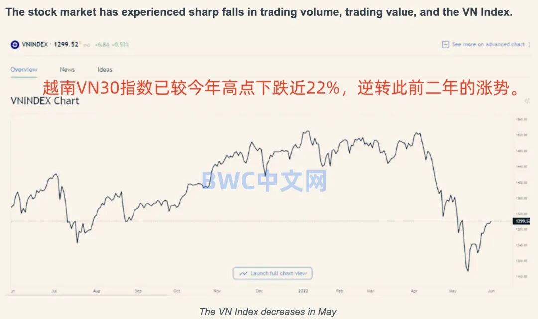 分析表示,越南金融市场的这种下行风险仍将会主导市场,并将会影响到越南经济的各个方面,同时越南还面临通胀攀升、供应链短缺、天气因素、房地产债务发展等宏观风险的增加,并对许多来越南投资的外国企业产生了负面影响。