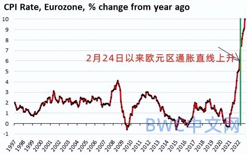 但英国经济认为债务上升不会产生什么后果,这就使得其已经深陷危险之中。甚至可能在未来某个时候可能重演当年欧债危机的景象。与此同时,在欧元区,根据欧盟统计局9月30日发布的初步数据,欧元区的通货膨胀率从 8 月份的 9.1% 跃升至 9 月份的 10%,这是自 1997 年以来欧元区数据的新纪录。