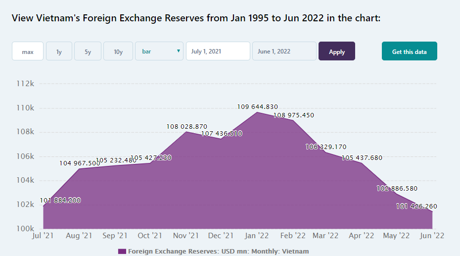 根据下图,可以清晰地看到,仅截至今年上半年,越南的外汇储备已经由年初的1096亿高位降至1014亿低点,为过去12个月以来最低水平。与此同时,全球资金正加速从越南撤离,截至9月,越南市场连续5个月陷入抛售潮,高达约970万亿越南盾的资金蒸发,几乎是2021年同期的4.9倍。