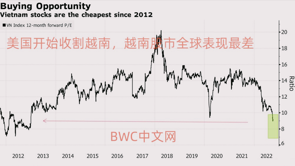 由于越南股市抛压强劲,过去的一周,越南股市更是以8.5%的跌幅成为全球表现最差的股市,创下自5月以来的最大单周跌幅。