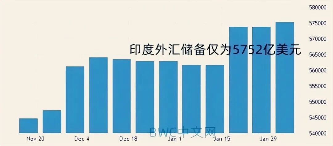 根据印度央行公布最新数据显示,截至2月初,印度外汇储备为5752亿美元。然而,印度原本的外债约为6200亿美元,再加上印度各州邦的公共债务,印度的公共债务总额高达约1.3万亿美元。债务总额与外储之比与越南接近,同样高达226%这一水平线。