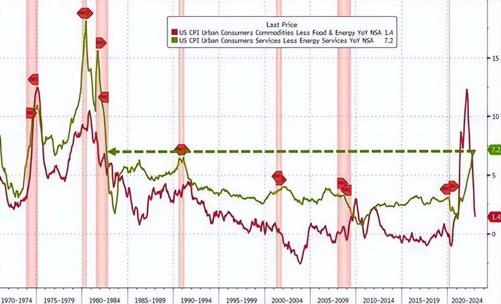 同时,美国服务业 CPI 飙升至 1982 年 7 月以来的最高水平。