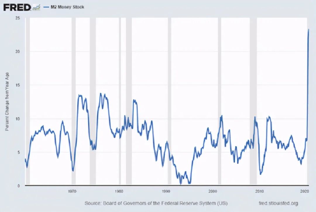 事实上,美联储主席早在二周前表示,等通胀和就业达到目标后就会考虑加息和缩减购债规模,这出乎市场的意料,鲍威尔会在讲话中直接向市场扔出一个金融“核弹”,这意味着美国发出了金钱转向信号。圣路易斯联储主席表示75%的美国人接种新冠疫苗,是考虑缩减QE的必要条件。市场分析认为,美国很可能会在2022年前全部完成缩减QE,华尔街一致认为美联储的债券缩减预期会成为市场的头号风险,因为美国金融资产价格波动的核心逻辑就是资产负债表的规模扩张速度和预期。