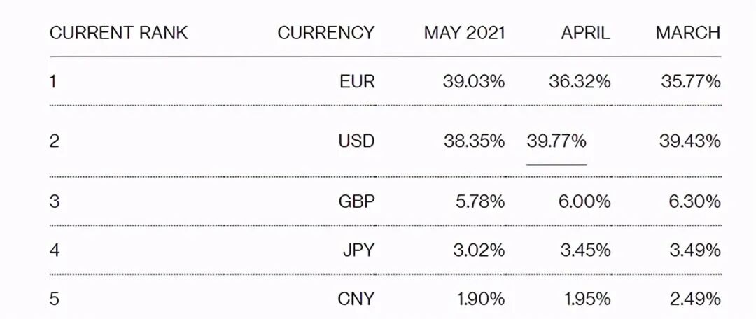 美联储主席杰罗姆·鲍威尔两天前称,对于部分市场弃用美元并不感到担心。美元是世界储备货币,另一种与之可以竞争的货币并不存在。然而,事实上,此时的美元却陷入困境。环球银行金融电信协会(SWIFT)最新数据显示,5月在全球支付货币占比中,美元已跌至38.35%,被欧元39.03%超越。
