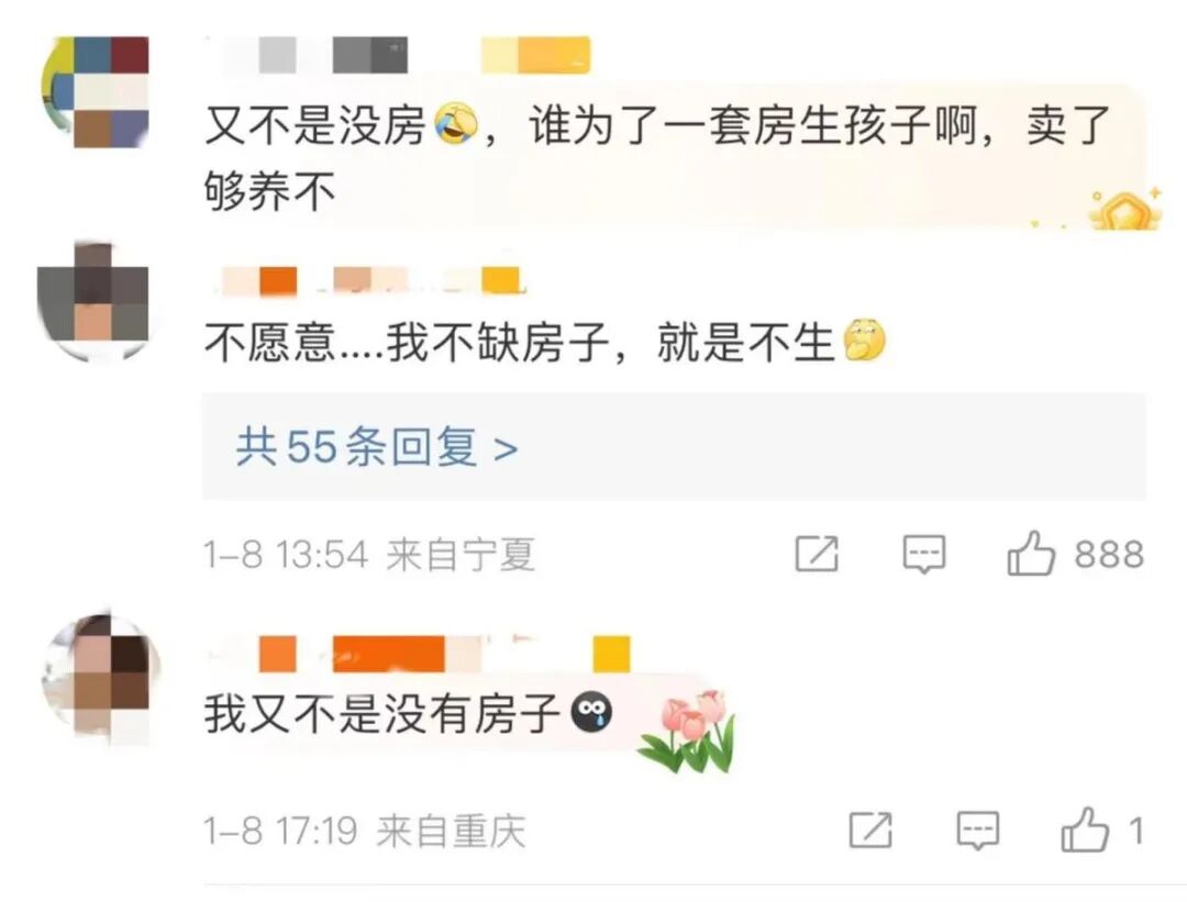 更有房姐、房哥表示不稀罕,“又不是没房,谁为了一套房生孩子啊!”