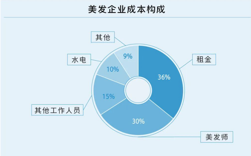 据统计数据显示,理发店的成本中,理发师和其他人员的人工成本大多不超过40%,其他成本中,房租往往是大头,仅此一项占比就在35%—40%之间。