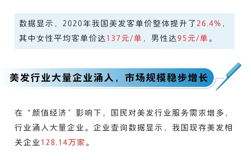 早在2020年,就上涨了26%以上,不光均价达到女性130元/单、男性95元/单,更是洗剪吹变成了洗、剪、吹,每一项都独立收费。