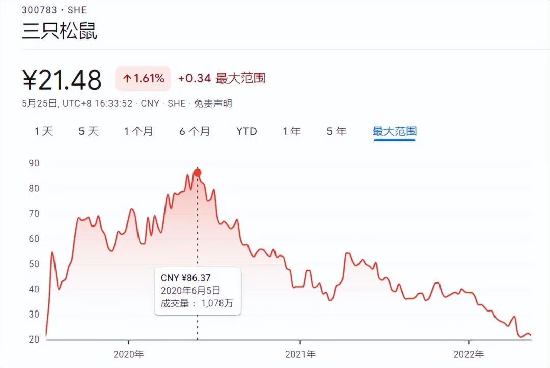 吃尽流量红利的三只松鼠,也终究难逃被流量反噬的命运,股价跌的只剩下了不到一只松鼠。