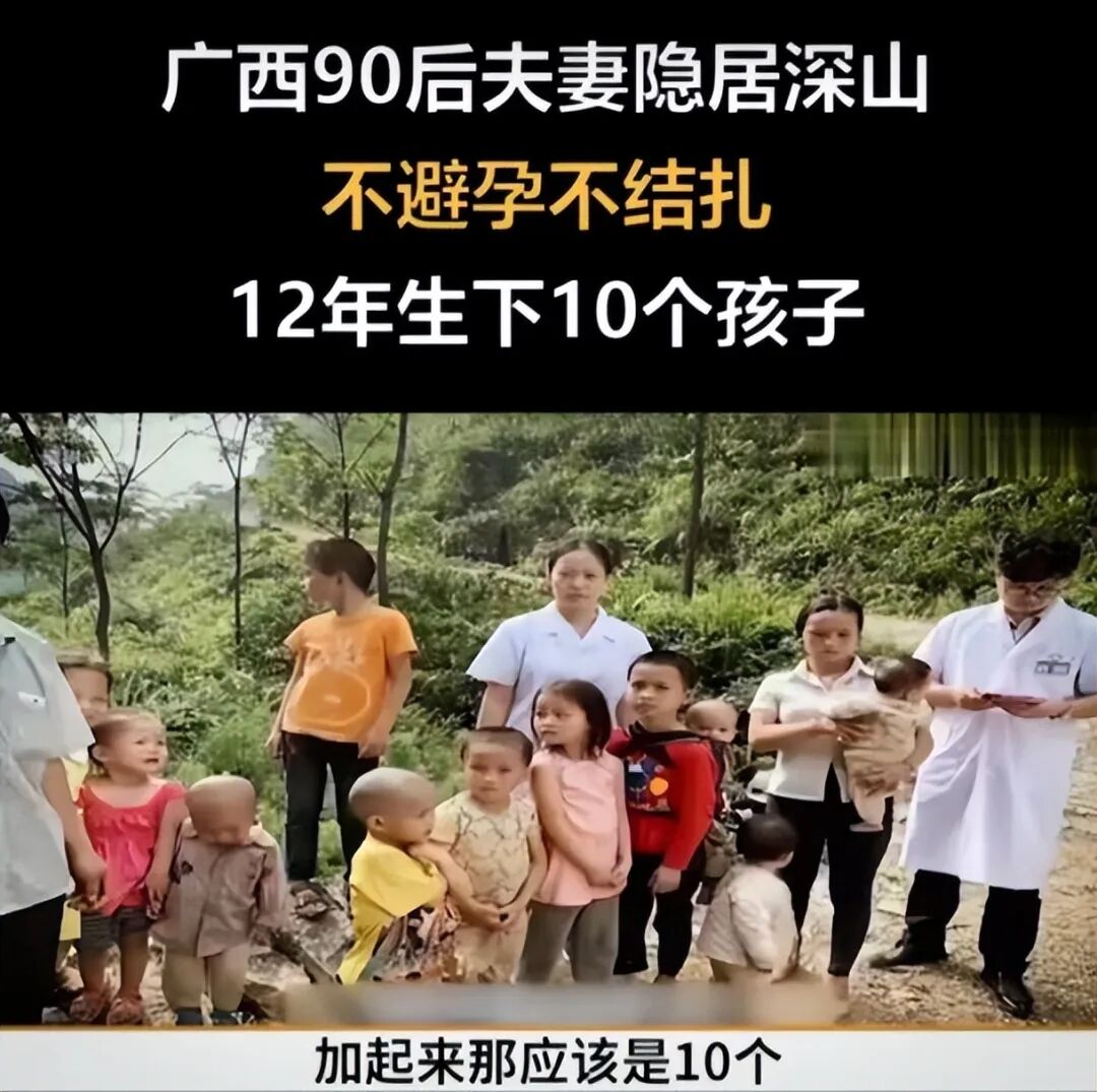 90后的蒙秀萍更加大胆,吃了个饭就辞去工作,跟韦国则回到广西农村隐居,12年生了10个孩子。