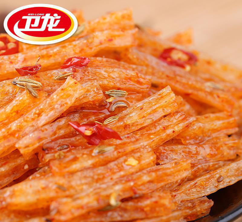 结果,按照生产酱干的做法去搞,酱干没被生产出来,反倒生产出一种麻辣口、味道还不错的面筋,也就是辣条。