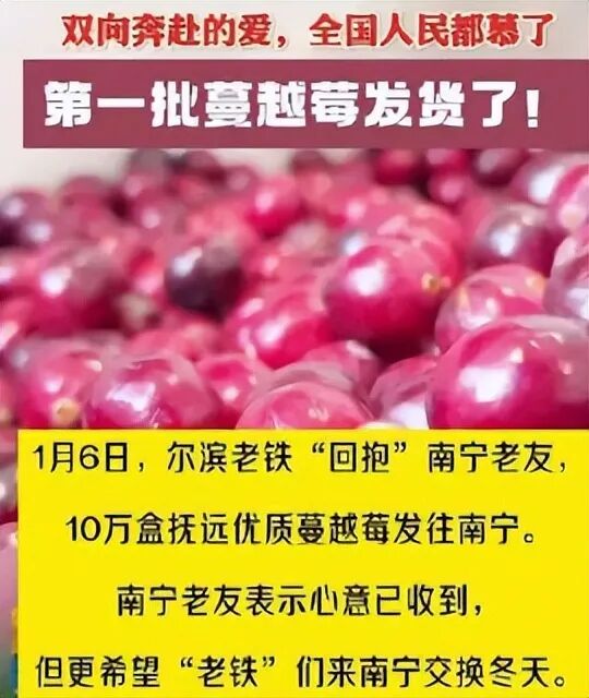 而一向对客人掏心掏肺的东北“老铁”立马回赠广西10万盒蔓越莓。