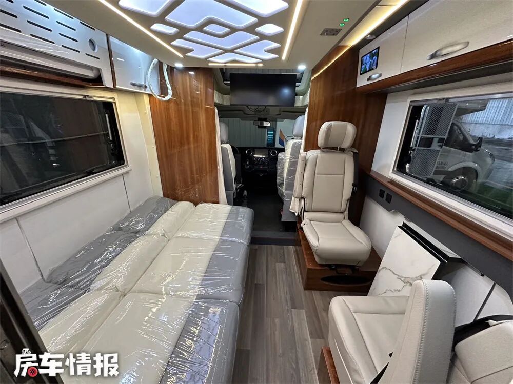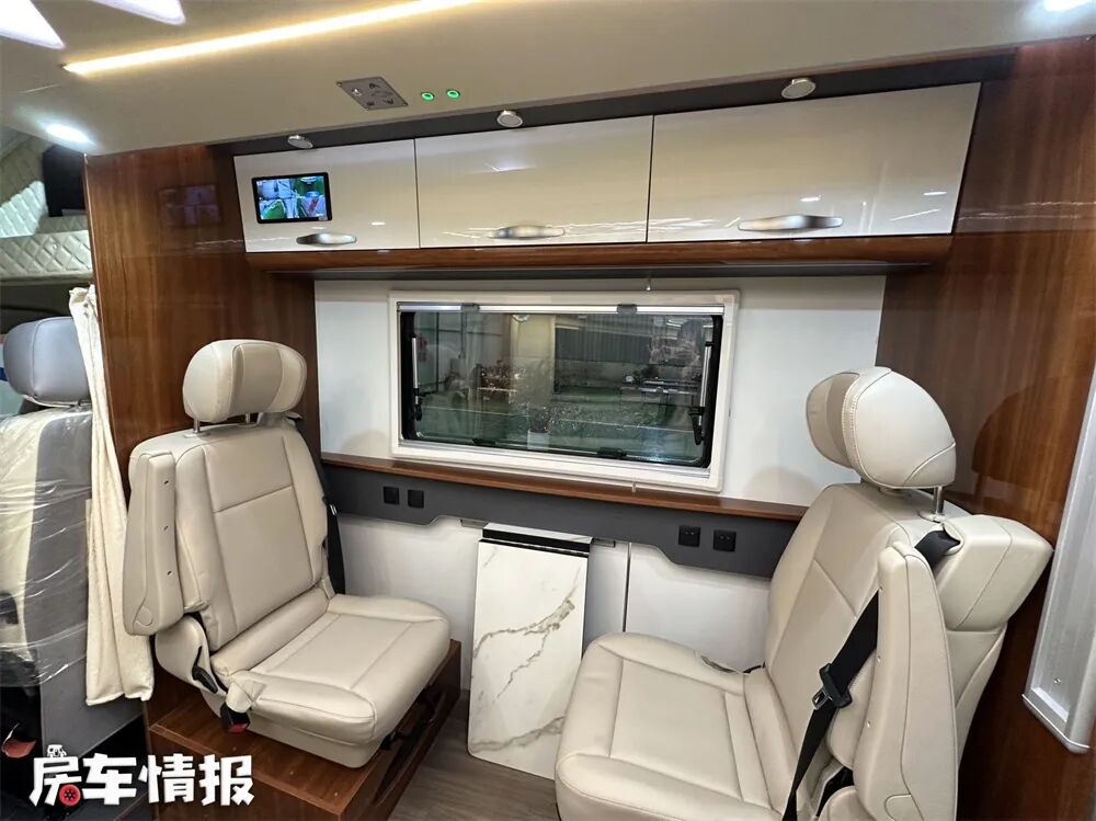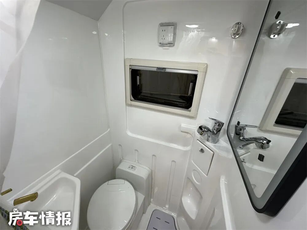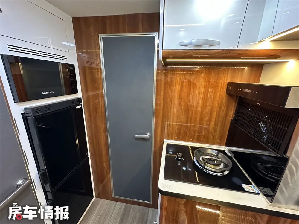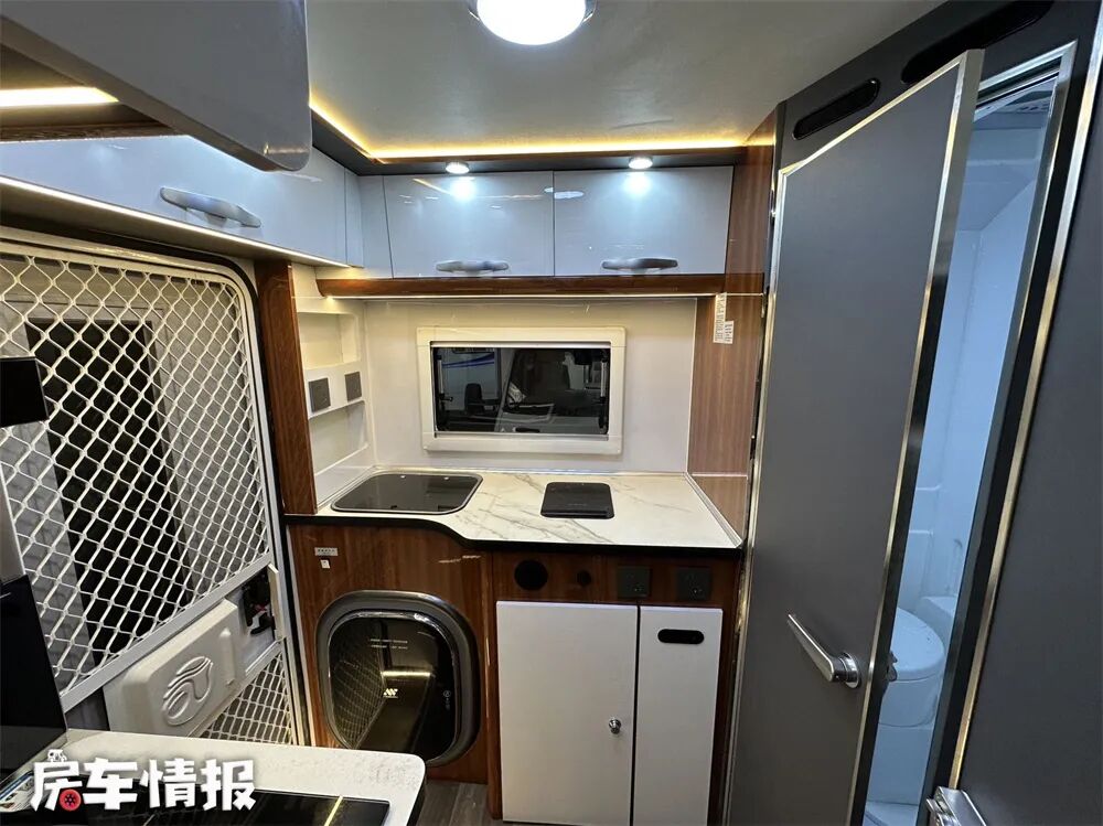 进入车内,后置厨卫加上后入门的设计使得进门后第一眼就是整车的厨房和卫生间,这样能够将生活区域隔开从而能够互不影响。