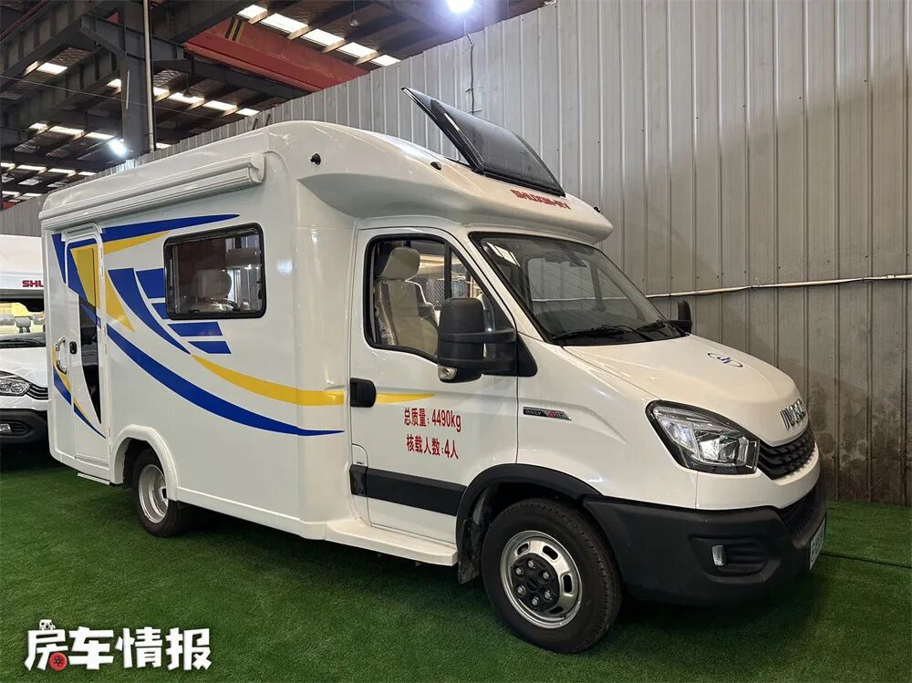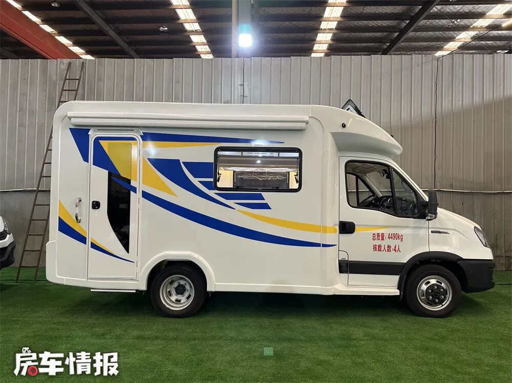 这款车是舒欣T型房车基于依维柯底盘打造的的,整车采用全铝的车身材质,通体白色搭配黄色和蓝色的拉花使得整款车看起来非常的清爽,车体还进行了保温隔热的处理,冬天出行也能保障室内温度。车身尺寸的长宽高分别是5995*2450*2995毫米,不到3米的车高的通过性也是不错的。侧面还配备了房车专用电动遮阳棚,能够提供一个舒适的户外客厅进行娱乐休息。