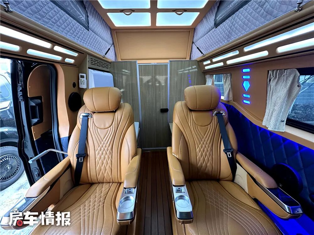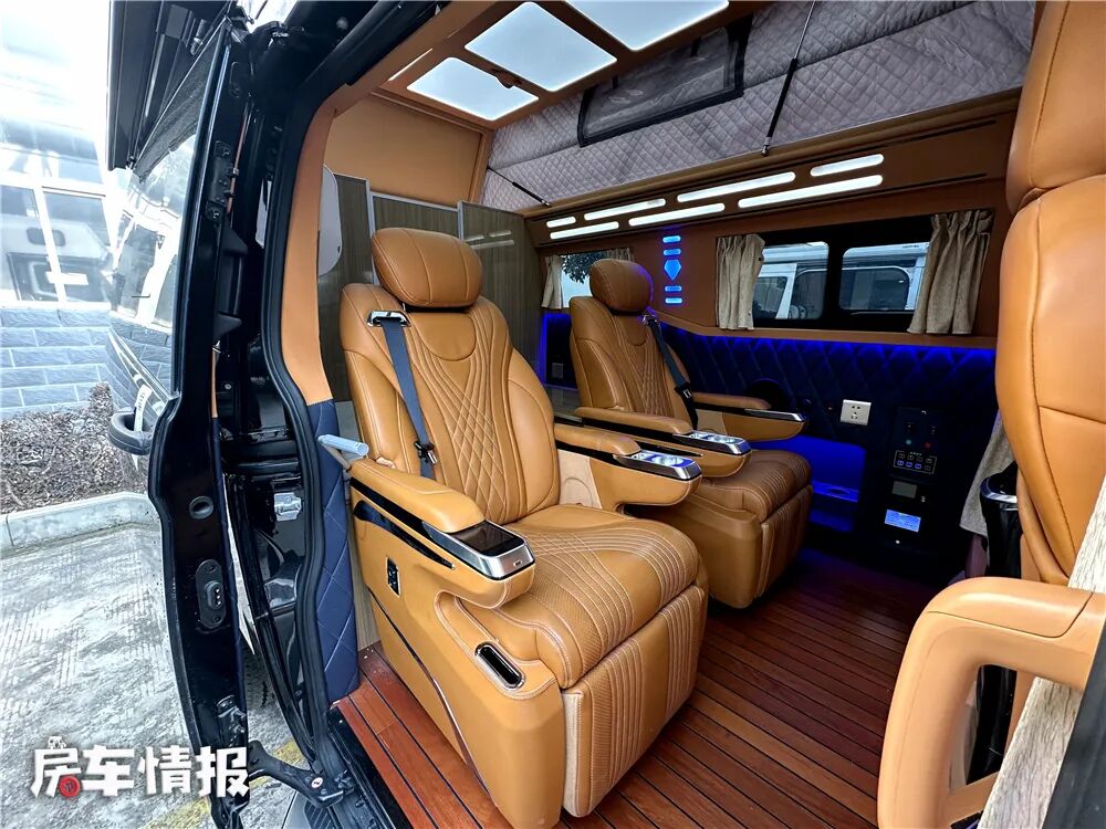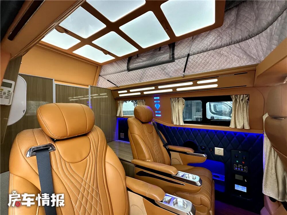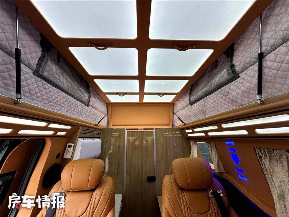 另外整车尺寸也不是很大,还采用了一个升降顶的设计,当车顶降下来以后,作为日常代步车也是没有问题的,动力上搭载的是一台2.0T柴油/汽油发动机,匹配9AT变速箱,日常开起来无论是动力响应还是舒适性,和普通MPV差距不是很大。