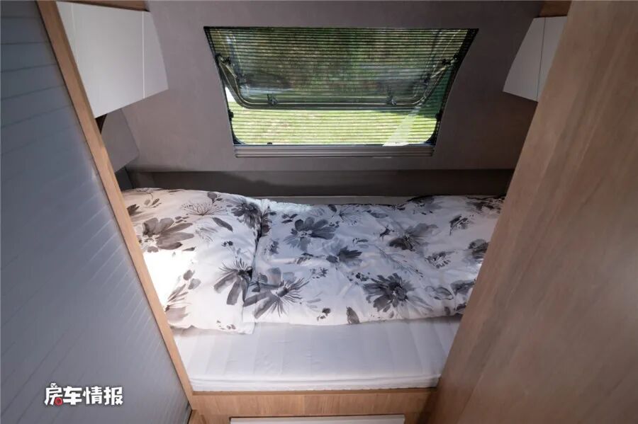 车尾部还提供了一张横置单人床,尺寸约为2050*1000mm,整体尺寸表现还是挺大的,睡下一名成年人或者2个小朋友是没有问题的。
