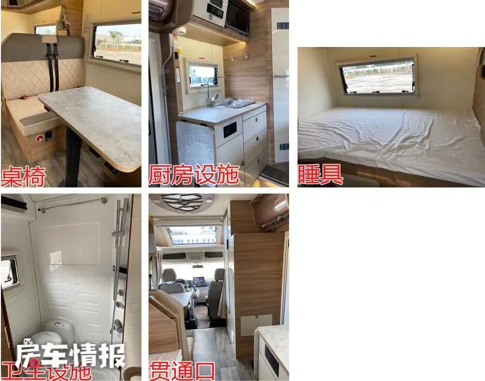 关于车厢内部,空间比起常见的B型V90房车有着较大的提升,已经赶上了依维柯C型车,较大的床位、厨房以及卫生间,能够满足日常使用所需。