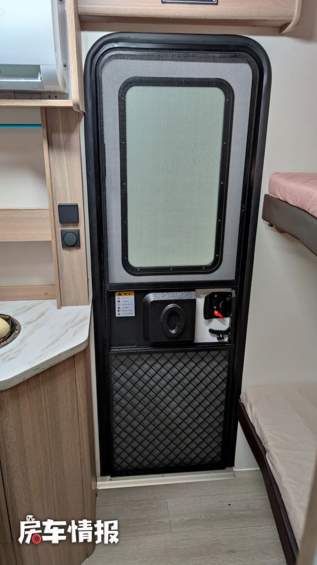 这款车采用美式房车专用门,内侧配有纱门在夏天的时候可以避免蚊虫飞入,同时车门下方还配有一级房车踏步。