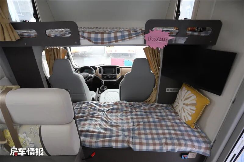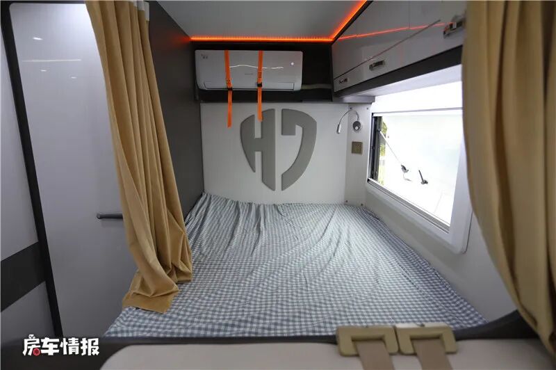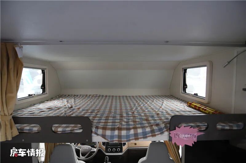 之后便是驾驶室后的单人床了,虽然占用了一些空间,但是车内的其他区域并没有显得小,这样的设计可以说是别出心裁了,驻车时既可以坐人,还可以当作简单的休息区来使用,十分方便。