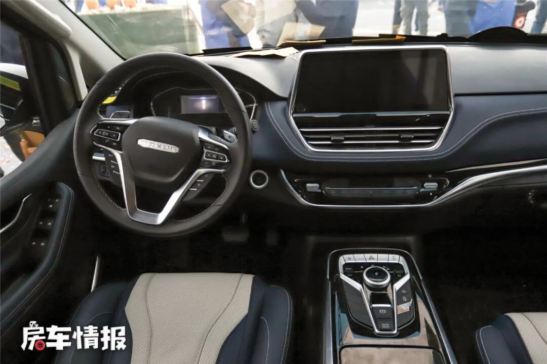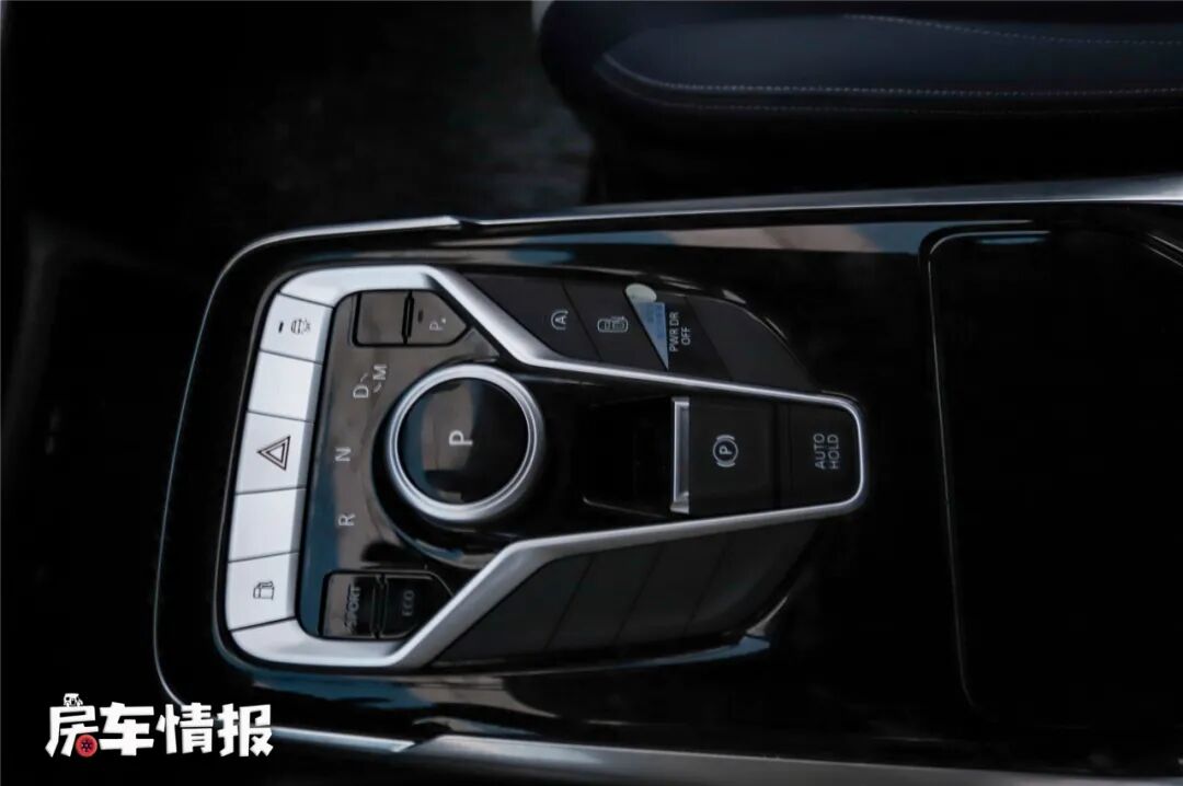 进入车厢内部,驾驶室采用了一个全新的设计样式和配色,整体看起来更有设计感,悬浮式中控屏也紧跟时下设计潮流,中控台采用了大面积的皮质包裹,在很大程度上提升了档次感,电子旋钮式换挡机构,不仅更具科技感,同时也在下方节约出了更大空间,便于存放随身钱包等物品。