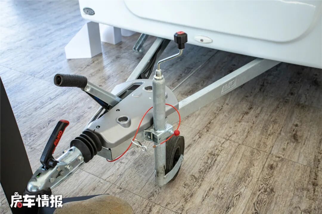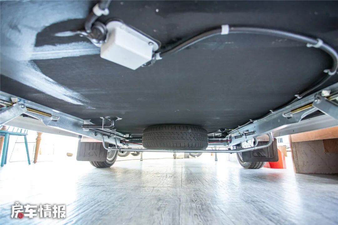 车身底盘采用的是德国爱科房车专用底盘,采用惯性撞刹机构,搭配上爱科独家的放摇摆技术提升了整车行驶的稳定性。