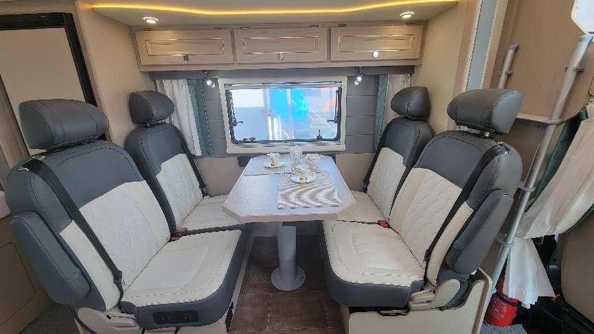 经典房车外观,大额头配置、侧拓展+后拓展形式,车身辅以金线装造型,视觉上延伸了车身的长度,额头上有两个鲜明的“角”,引擎盖上的装饰条,都让整个房车看上去遒劲有力,并且还标配驻车支腿、五明治复合车身结构,稳重安全才是第一大保障!