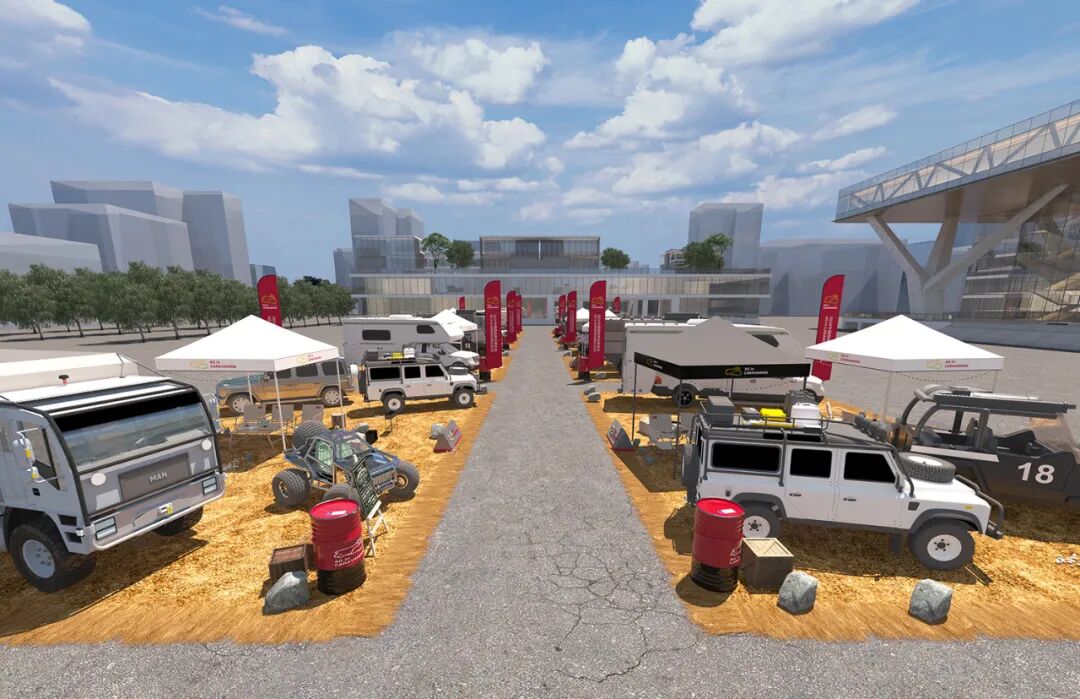 探险露营区是针对于具有探险露营属性的房车品牌及车型所打造的一个专属展示平台。该区域位于户外,总面积约1500平米,共设置8个独立品牌展示区。
