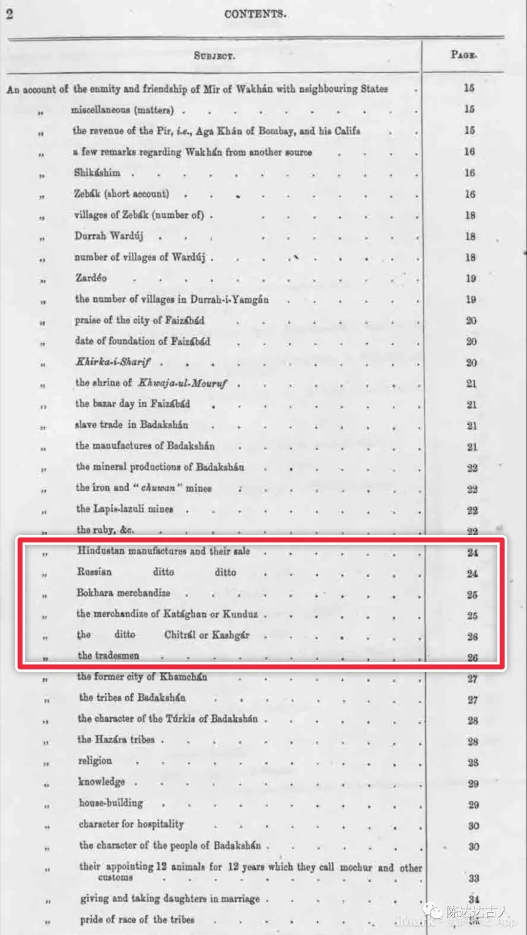 我还听说很多另外的商品是从叶尔羌运到巴达克山的,但当我在巴达克山时,由于叶尔羌正处于动荡时期,其商人根本就不可能来,在我逗留期间,倒是有很多商人们把肥尾羊和“巴兹甘吉(Bazghanj)”带到叶尔羌。
