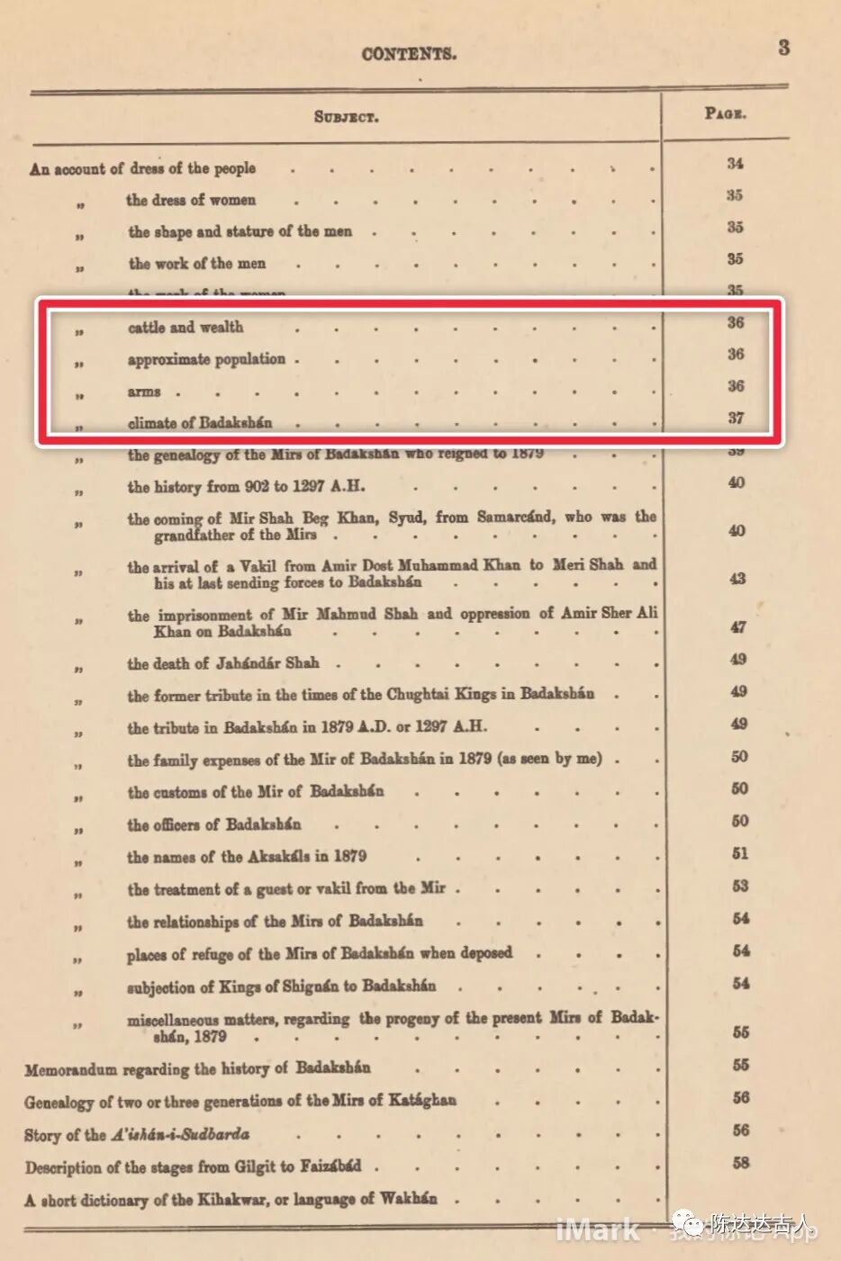 巴达克山人的全部财富就是这些羊群和牛群。他们没有现钞;谁家都拿不出甚至10000兰特的现钞。在牛的数量上,突厥人饲养的最多,超过了塔吉克人和哈扎拉人。