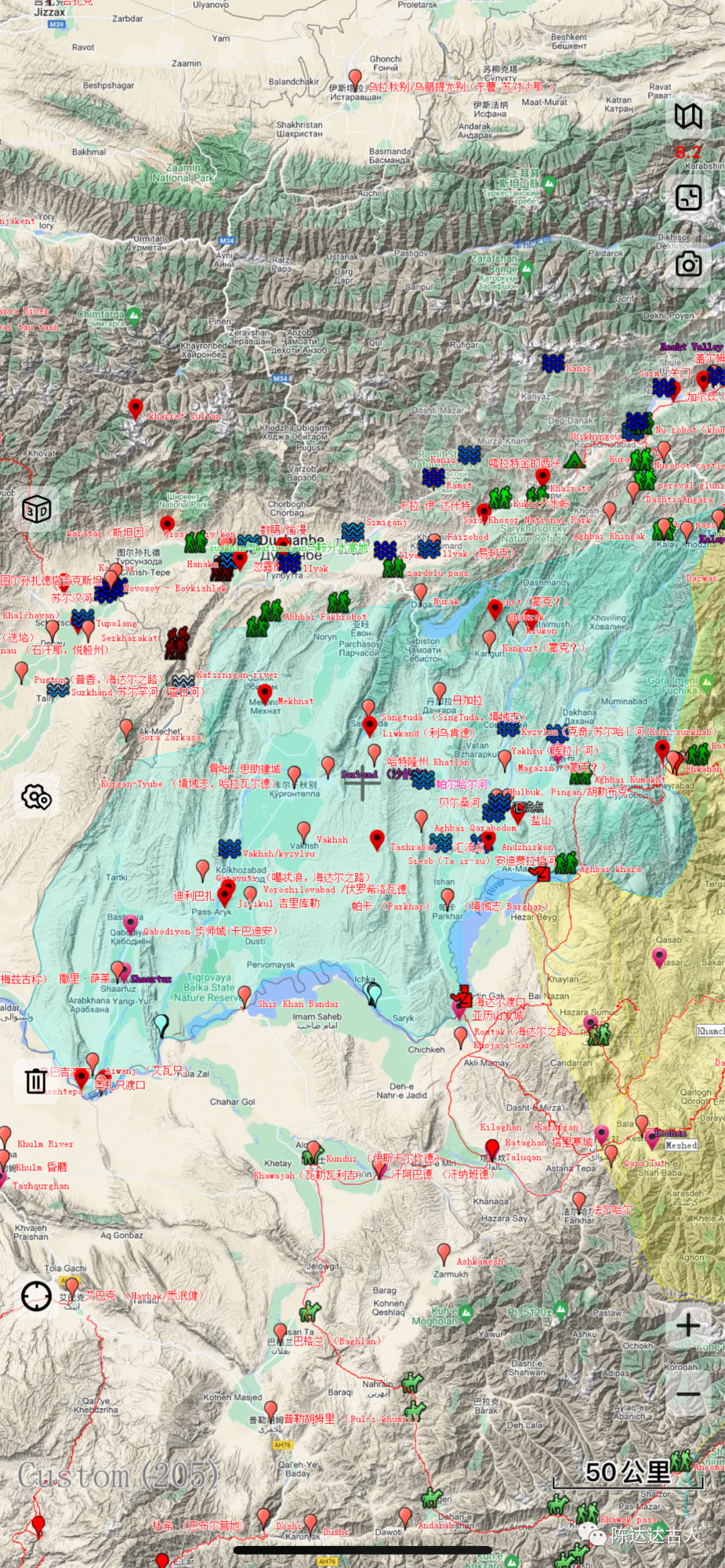 ·努迪斯( Nu-Diz),巴托尔德注释为“新城堡”,但方位不详;本案认为这个新城堡应该就是“Hisor Fort”,它是相对于其北面旧城堡“Gissar ”(阿哈伦/Akharun)吉萨尔古城而言。