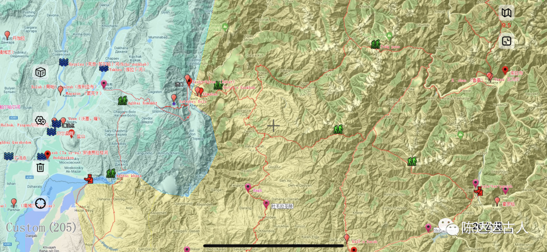 由此,借助伊本•胡尔达兹比赫的记载,我们可以判定“达尔•伊 •图伯特(Dar-i Tubbat)”这个所谓的“吐蕃之门”就应该指的是今天塔吉克斯坦官方地图上的萨菲多里波罗(基什特普雍渡口(Kisht-Poyon ),而非骨咄东北边境的“达尔瓦兹(Darwaz)”。巧得是,在基什特普雍对岸(喷赤河左岸),即今巴达赫尚境内,正好是渡口城市“Khwahan”,中文译名就叫“瓦罕”。