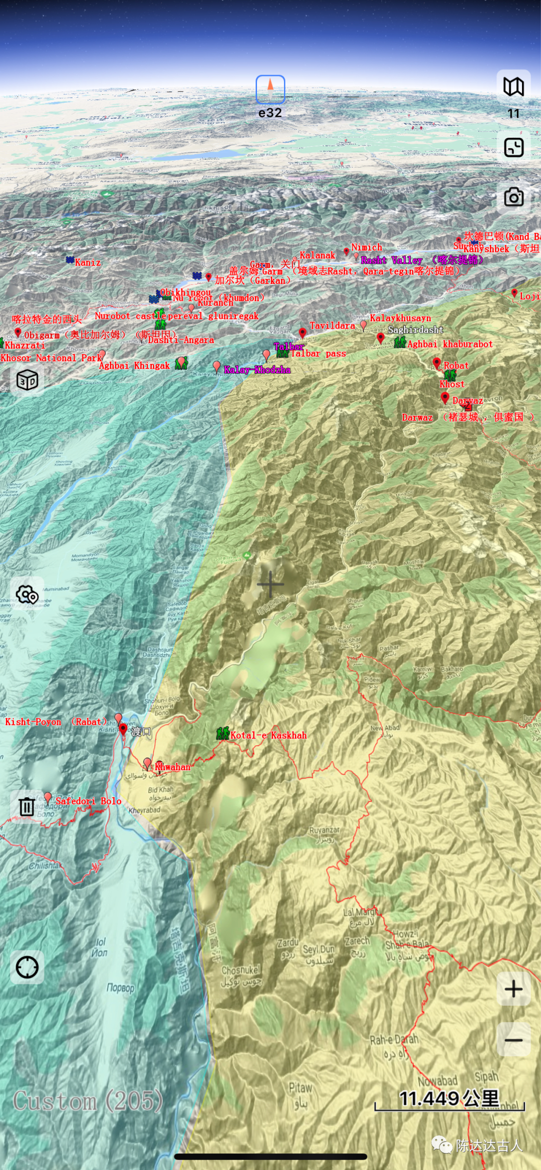 《境域志》里说,这个门,“位于山上。……一走出这个门,就到了瓦罕境。”按照今天的地理概念,瓦罕(Wakhan)与骨咄不接壤,中间隔了巴达赫尚境内连绵起伏的高山峡谷,有的属于拉格,有的属于法扎巴德,有的属于什格南辖区控制。如果什格南归属瓦罕统治,那么“一走出这个门,就到了瓦罕境”,这句话就是成立的。如此一来,有两个地方满足这个条件,其一是库洛布正东方向的萨菲多里波罗(Safedori Bolo ,其山下渡口,即基什特普雍(Kisht-Poyon ),其二是就是库洛布东北方向的达尔瓦兹(Darwaz),都位于喷赤河的右岸,而且两个地方都有过河的涉水渡口到达对岸瓦罕什格南地区。而对于这两处地标的选择,《境域志》中文译本的注释可以帮助我们进行分析判定。