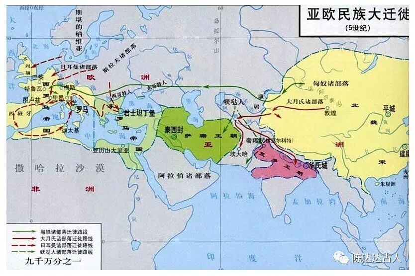 南北朝时期,也㘙哒人入侵中亚时,塞种人发生了一种比较特别的民族分化,其中以康国最为典型。那就是世代经商的塞种后裔就是粟特人,世代从军的塞种后裔叫柘羯人,比如安禄山,史载他是胡人(即粟特人),但有时也被记载为羯人。