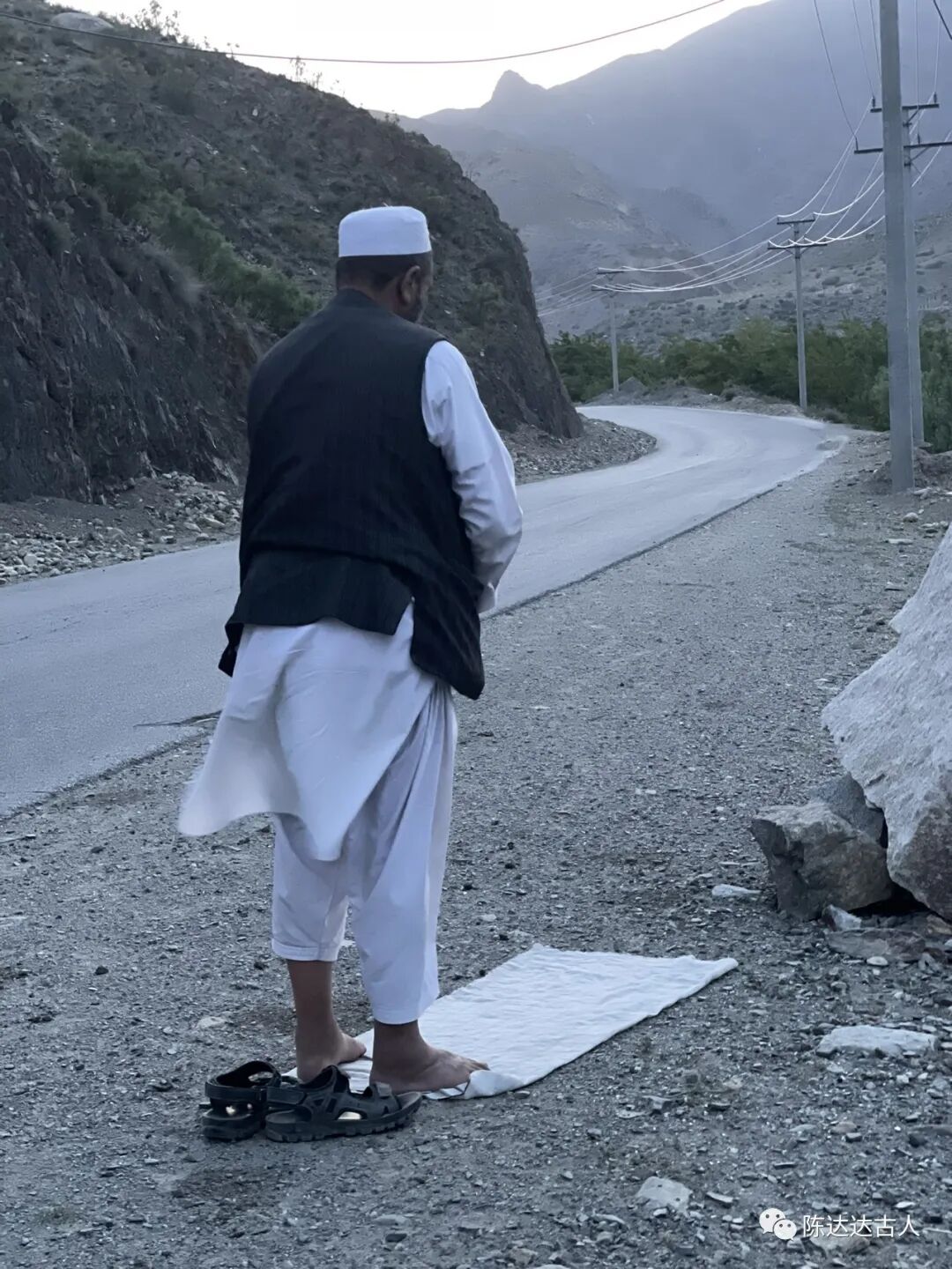 此时,天空已经淡出鱼肚白微光。我们的车子停在了路边一个灯火通明的清真寺旁。清真寺临马路边有一圈围栏,围栏里走上两三步台阶就是清真寺的大回廊,回廊内墙是柱间朝东的大门和琉璃玻璃窗。从外往里看,清真寺大厅里已经有很多信徒跪在地上做起了晨祷。他们三个人也陆续下车洗手,跪在回廊上,面对着墙壁,朝着麦加的方向匍匐祷告,嘴里念念有词。期间,我问了一下黑头巾塔塔此刻的时间,他抬腕看了一眼,用手在我面前比划了一下,意思是清晨4:30。我赶紧朝着我们前行的方向比划着提醒他(喀布尔机场就在前面东南方向40公里左右),我的飞机航班是早晨7:00登机。他眯着双眼,不置可否,喉咙里发出一阵莫名其妙的哼哼声。我无奈地点燃一只香烟,狠狠地吸了几口,便扔在地上,再用脚底死劲地踩压了几下。