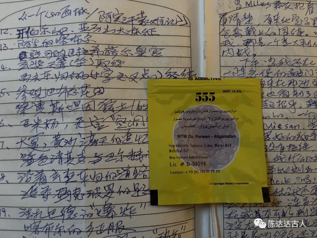 (阿富汗的男人尽管都不抽烟,但是他们却喜欢在牙缝里塞进一小袋“555”牌的尼古丁“糖块”。这种所谓的尼古丁在任何一个巴扎都可以买得到。它的功效实际上跟薄荷香烟差不多,是由Tobacco(烟叶),Lime(酸橙皮),Water(水)和Menthol Oil(薄荷油)原料组成的混合物,像含片一样,既可以口含融化,又可以咀嚼食用,只是不冒烟而已。)