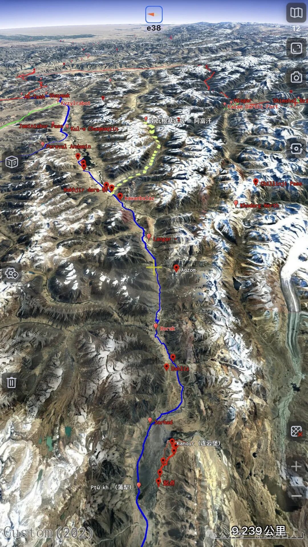 4、从Langar到南瓦根基达坂,全程70公里左右,海拔高度从3900米提升至5000米,属于高原路段。河流名称是“瓦赫达拉”,即喷赤河(阿姆河)的发源地。