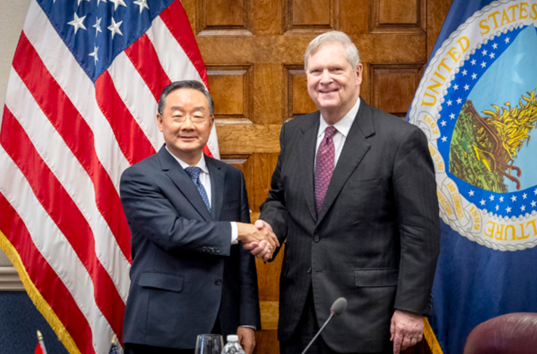 在农业领域,中美也迎来了一个重要时刻。据农业部网站消息,中国农业农村部长唐仁健在华盛顿,与美国农业部长维尔萨克,共同主持召开中美农业联委会第七次会议,宣布重启中美农业合作机制。而上一次中美进行此类会议还是在2015年。