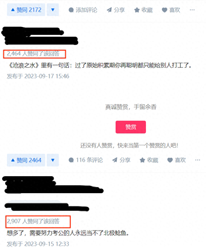 后面的留言大同小异,点赞都不少,我关闭了页面不再往下看,因为都差不多,里面充满了不公的愤怒,无法改变现状的憋屈,还有无奈认命的屈辱。