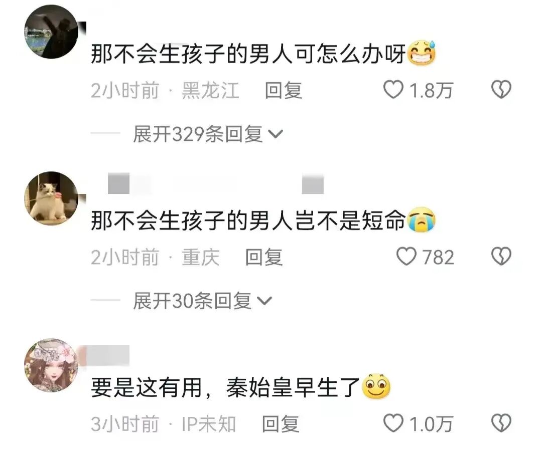 光顾着让女人生2娃长寿了,不管男人了?网友担心不会生孩子的男人可怎么办呀。