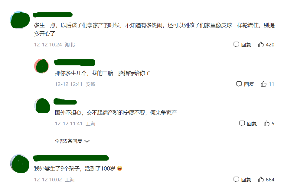 还有网友说:我外婆生了9个孩子,活到了100岁,这要是生俩,不得奔着200岁?