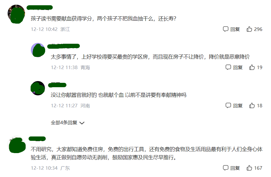 有网友不高兴地说道:孩子读书需要献血获得学分,两个孩子不得把我血抽干么,还长寿?