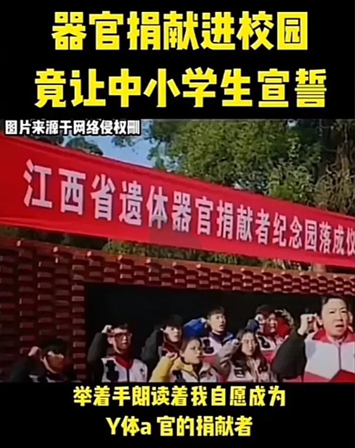 家长们看了是何感受?中小学生还是未成年人,三观并未完善树立,更是限制民事行为能力人,让他们集体宣誓捐献器官合适吗?